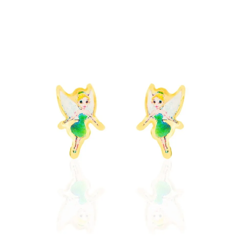 Boucles D’oreilles Or Jaune 375/1000 Puces Fées Vertes