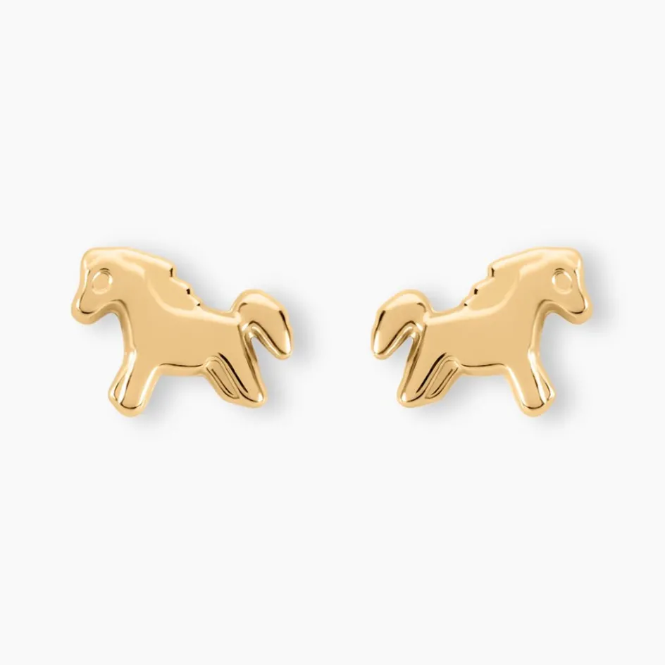 Boucles D’oreilles Or Jaune 375/1000 Puces Chevaux