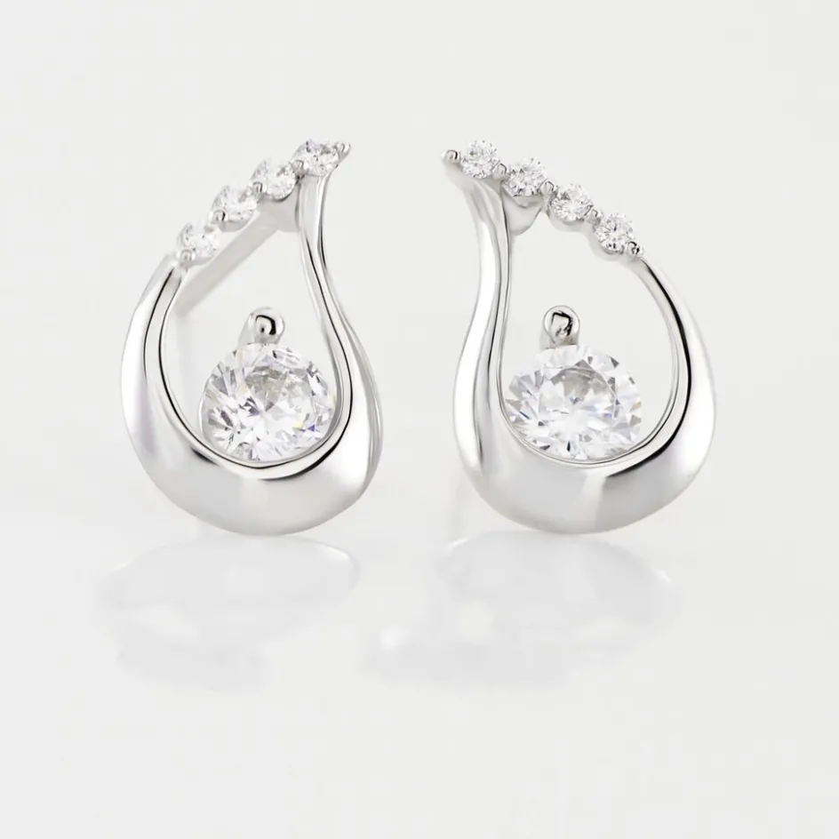Boucles D’oreilles Puce Or Blanc 375/1000 Goutte Oxydes De Zirconium