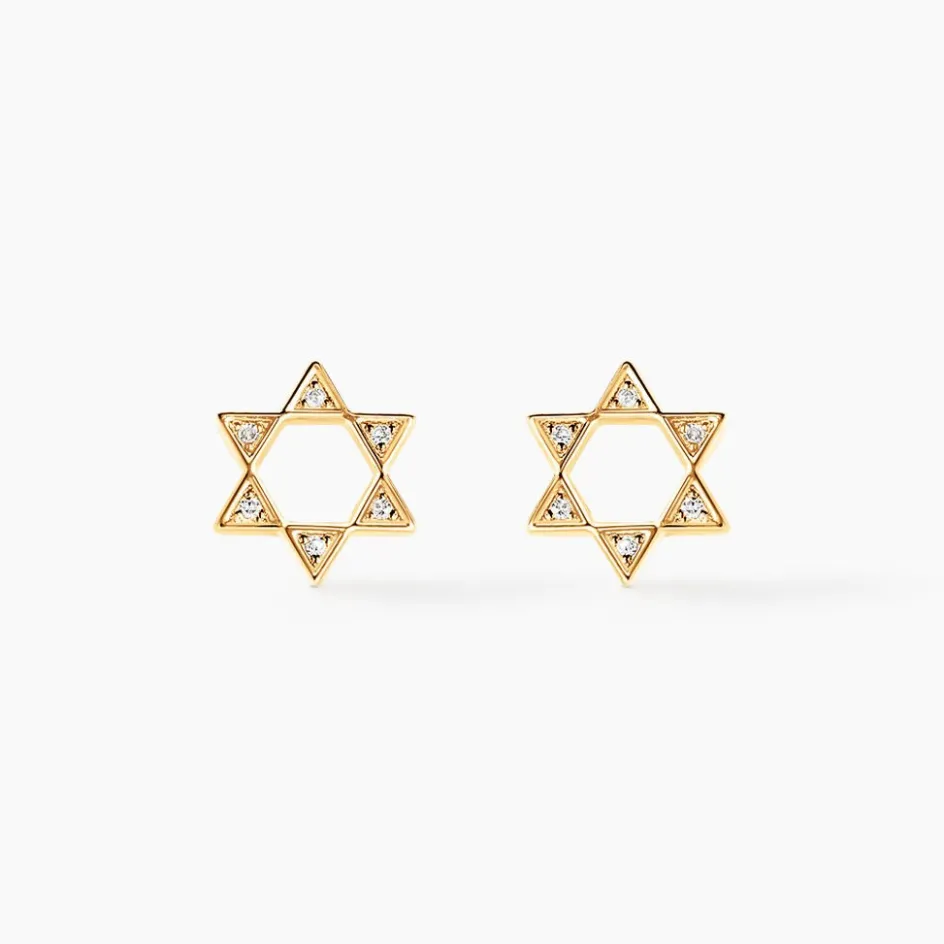 Boucles D’oreilles Puces Or Jaune 375/1000 Etoile De David Pavage Diamants