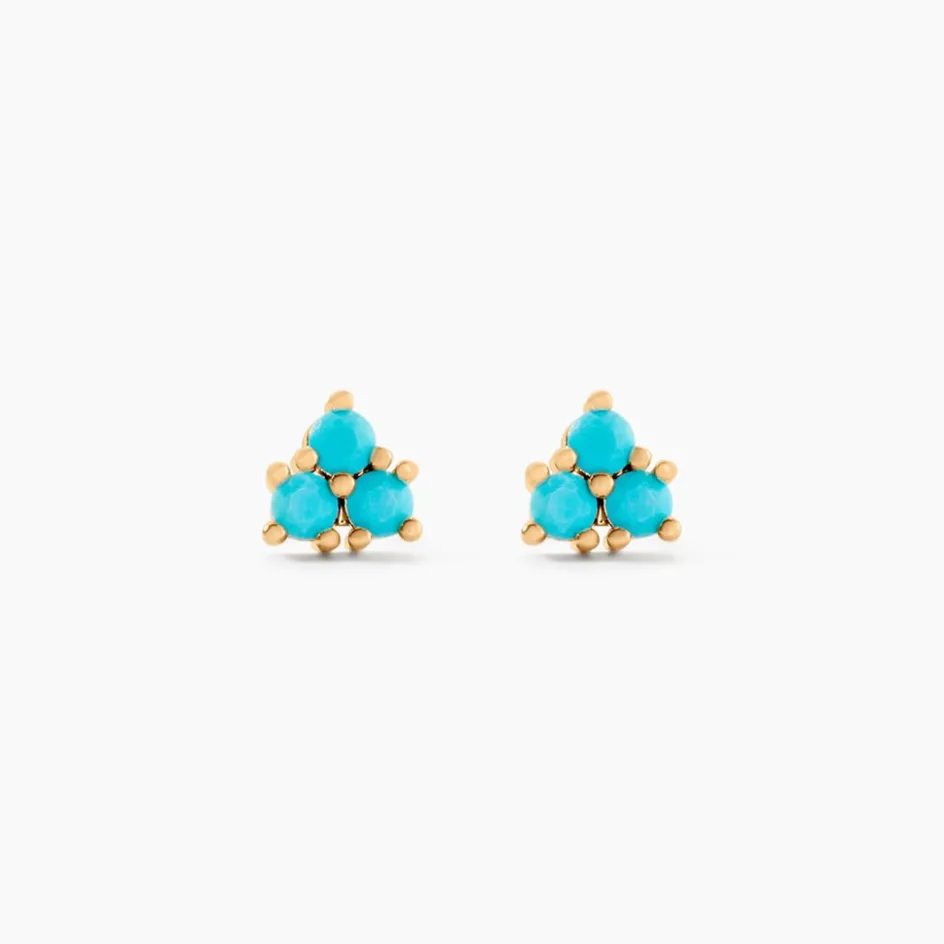 Boucles D’oreilles Puces Plaqué Or Jaune Trio Pierres De Synthese Turquoise