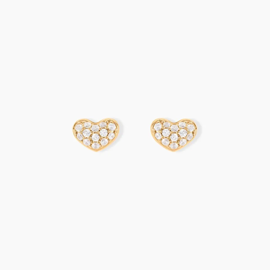 Boucles D’oreilles Puces Plaqué Or Jaune C艙urs Pavage Oxydes De Zirconium