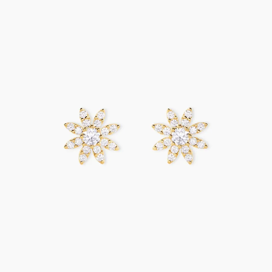 Bo Puces Or Jaune 750/1000 Soleil Oxyde De Zirconium Blanc Serti 8 Griffes