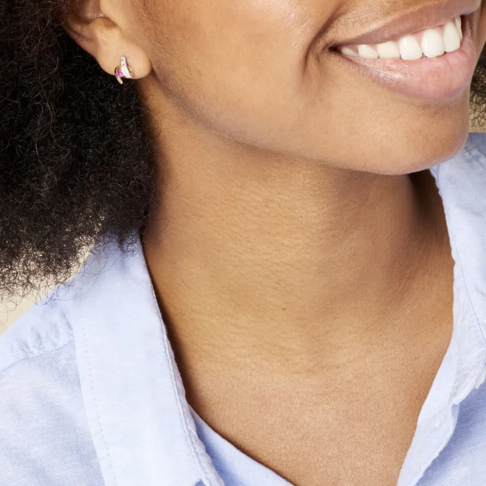 Boucles D’oreilles Or Jaune 375/1000 Rhodie Rubis