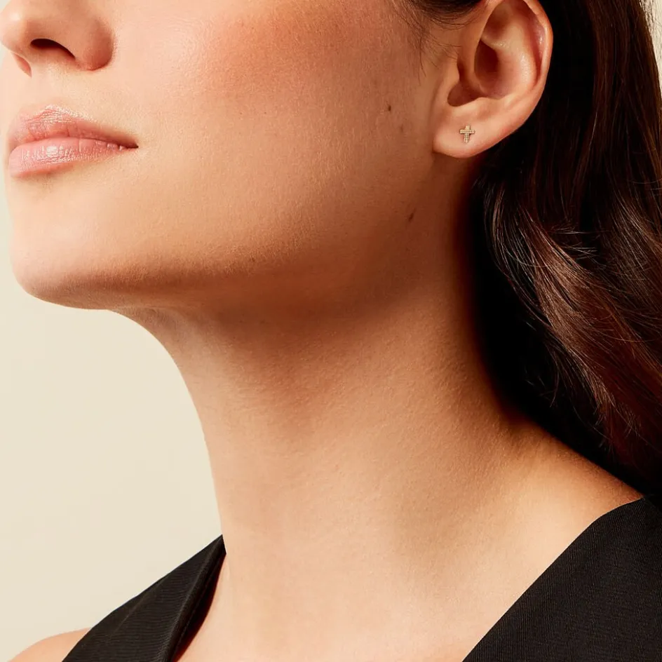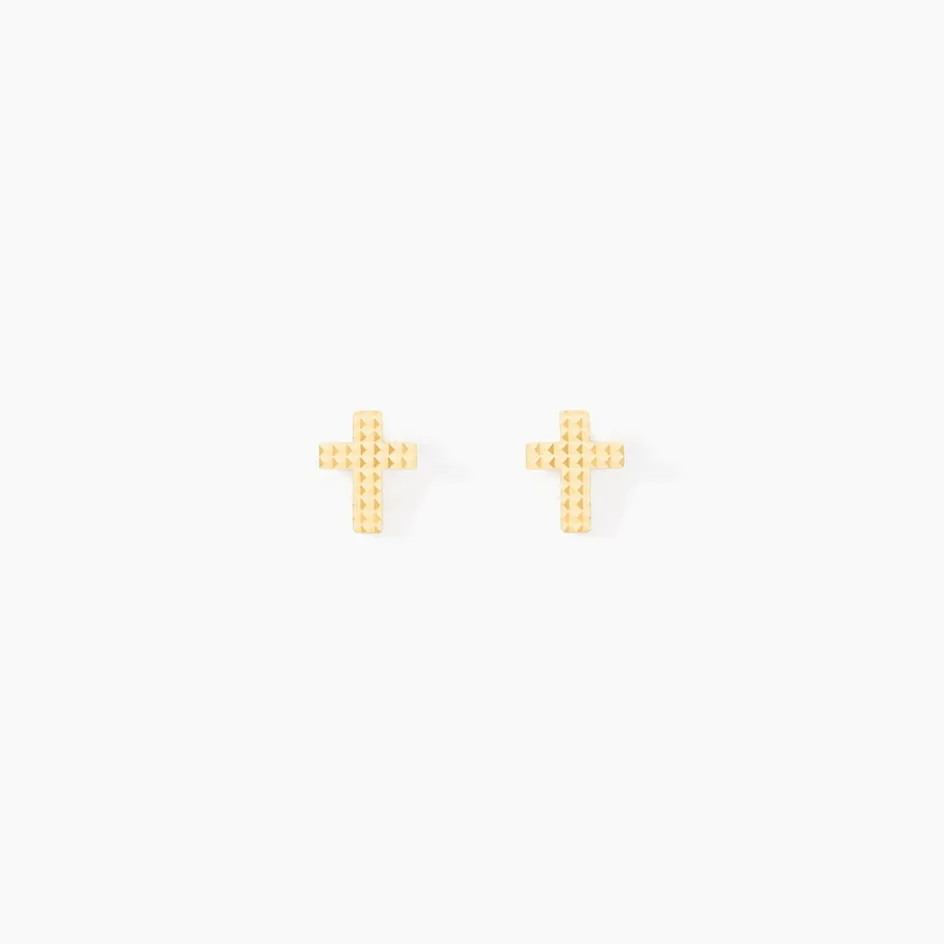 Boucles D’oreilles Puces Or Jaune 375/1000 Croix Effet Piquete