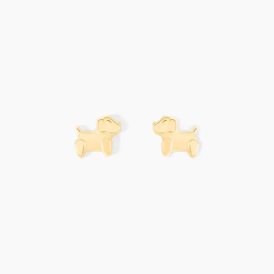 Boucles D’oreilles Puces Or Jaune 375/1000 Chiens