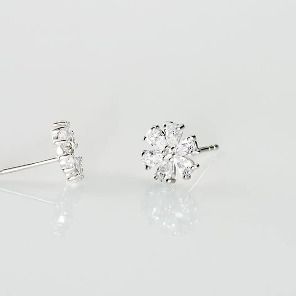 Boucles D’oreilles Or Blanc 375/1000 Puces Motifs Poire Et Rond Oxydes De Zirconium