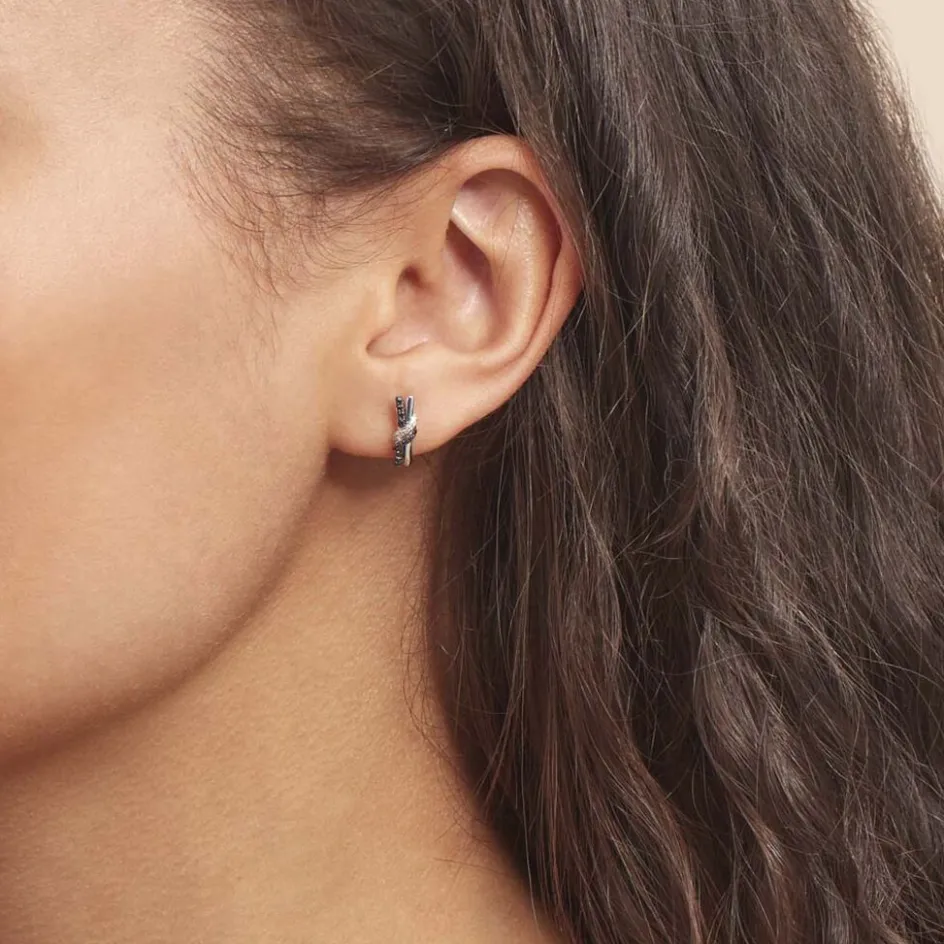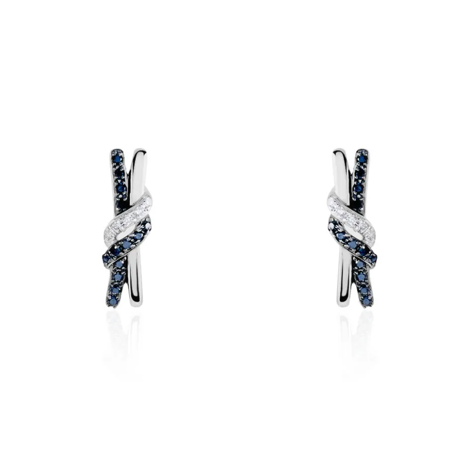 Boucles D’oreilles Or Blanc 375/1000 N艙uds Paves Diamants Blancs Et Diamants Noirs