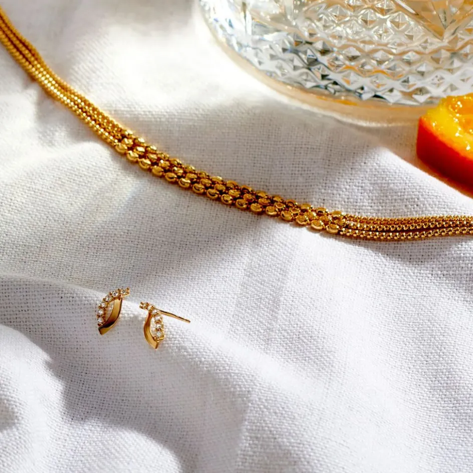 Boucles D’oreilles Puces Or Jaune 375/1000 Formes Gouttes Ajourées Oxydes De Zirconium