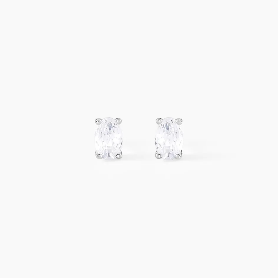 Boucles D’oreilles Puces Argent Blanc 925/1000 Puces Oxydes De Zirconium Formes Ovales 4x6mm