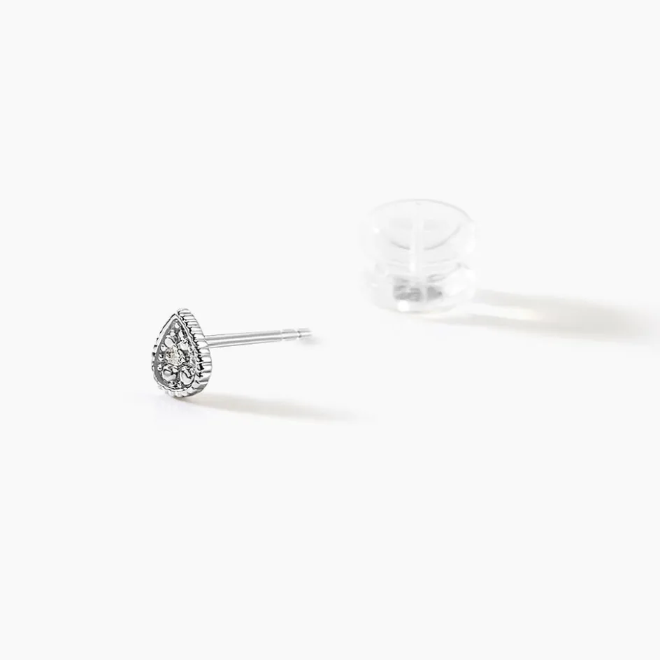 Boucles D’oreilles Puces Or Blanc 375/1000 Gouttes Effet Perlé Et Diamants