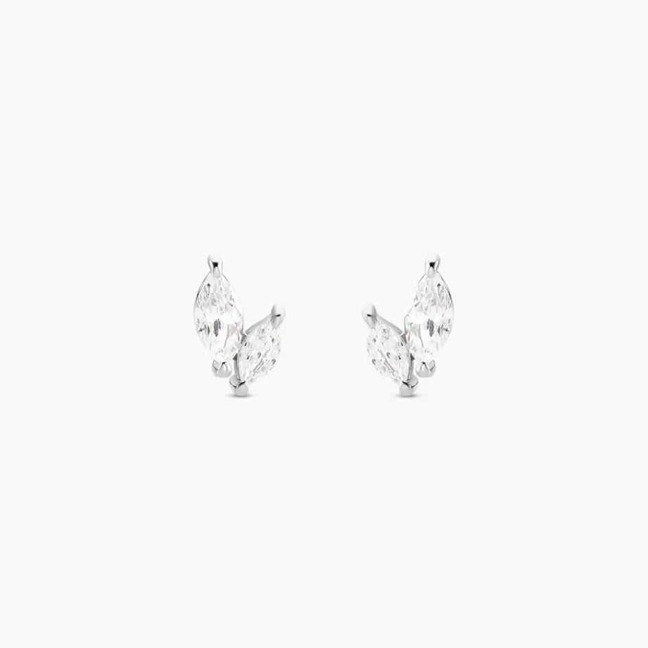 Boucles D’oreilles Puces Argent Blanc 925/1000 Oxydes De Zirconium Formes S Serti 2 Griffes