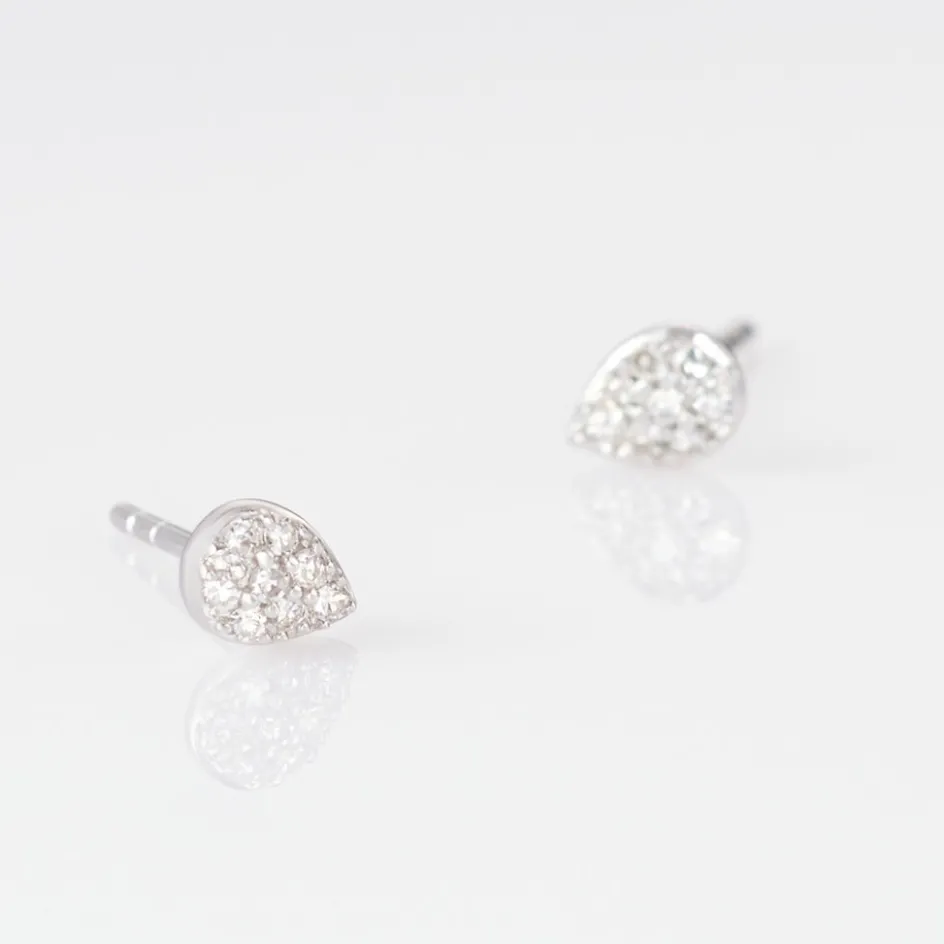 Boucles D’oreilles Or Blanc 375/1000 Goutte Microsetting Diamants