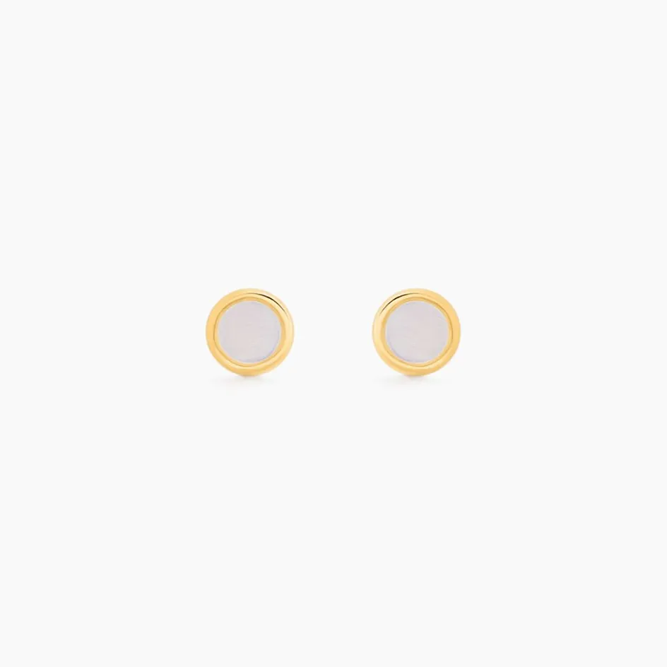 Boucles D’Oreilles Puces Or Jaune 375/1000 Cercle Nacre Serti Clos 4Mm