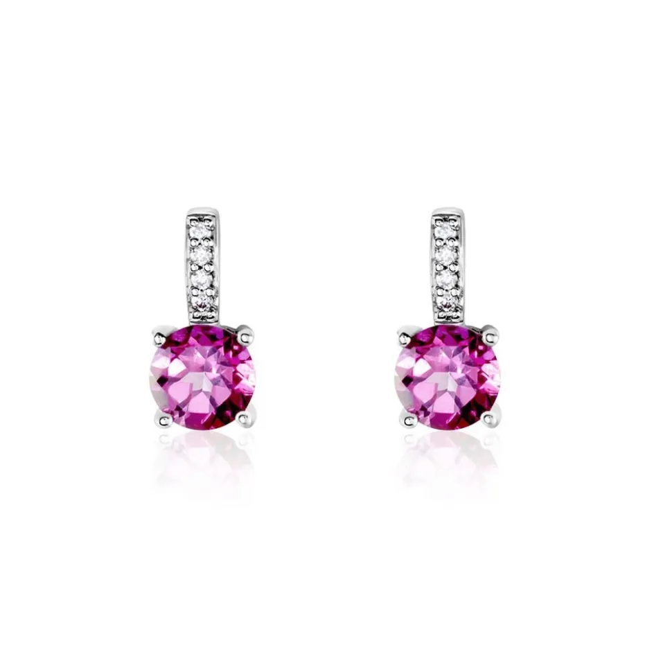 Boucles D’oreilles Puces Or Blanc 375/1000 Topaze Rose 1.3cts Serti 4 Griffes