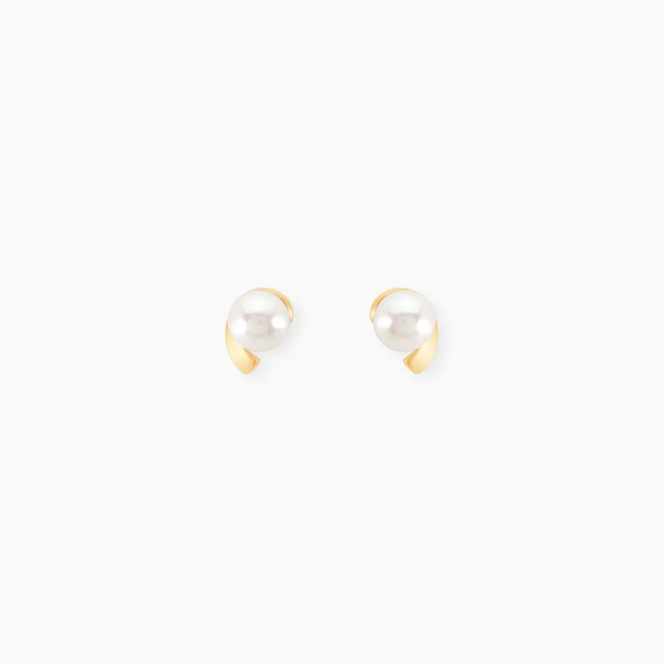 Boucles D’oreilles Puces Or Jaune 375/1000 Formes Virgules Perles De Culture 4mm
