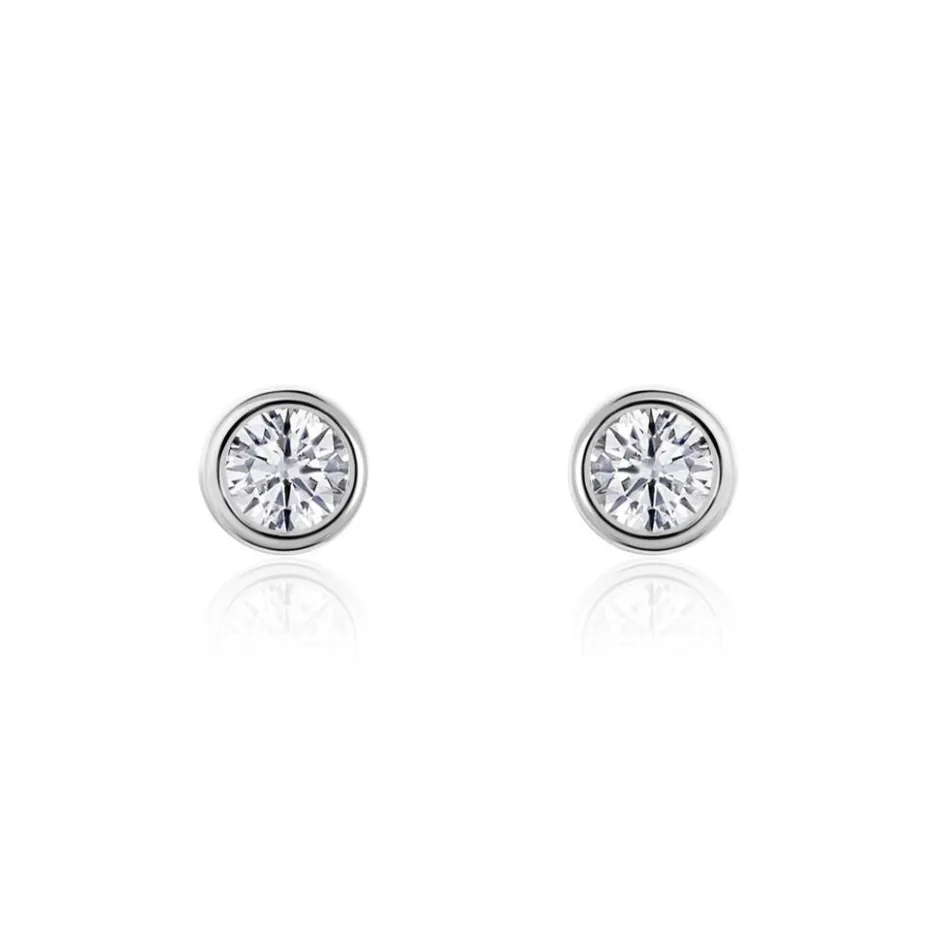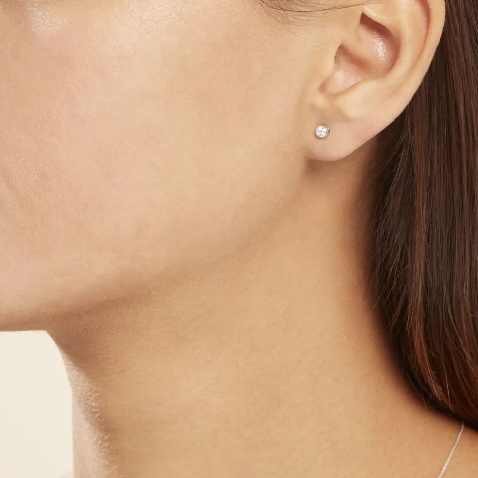 Boucles D’oreilles Puces Or Blanc 375/1000 Diamants Sertis Clos 0.10 Cts