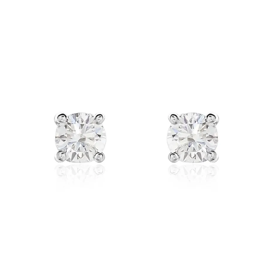 Boucles D’oreilles Puces Or Blanc 750/1000 Puces Diamants 0.40cts Sertis 4 Griffes Fermoirs Securise