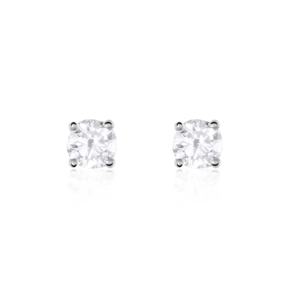 Boucles D’oreilles Or Blanc 750/1000 Puces Diamants 0.30cts Sertis 4 Griffes