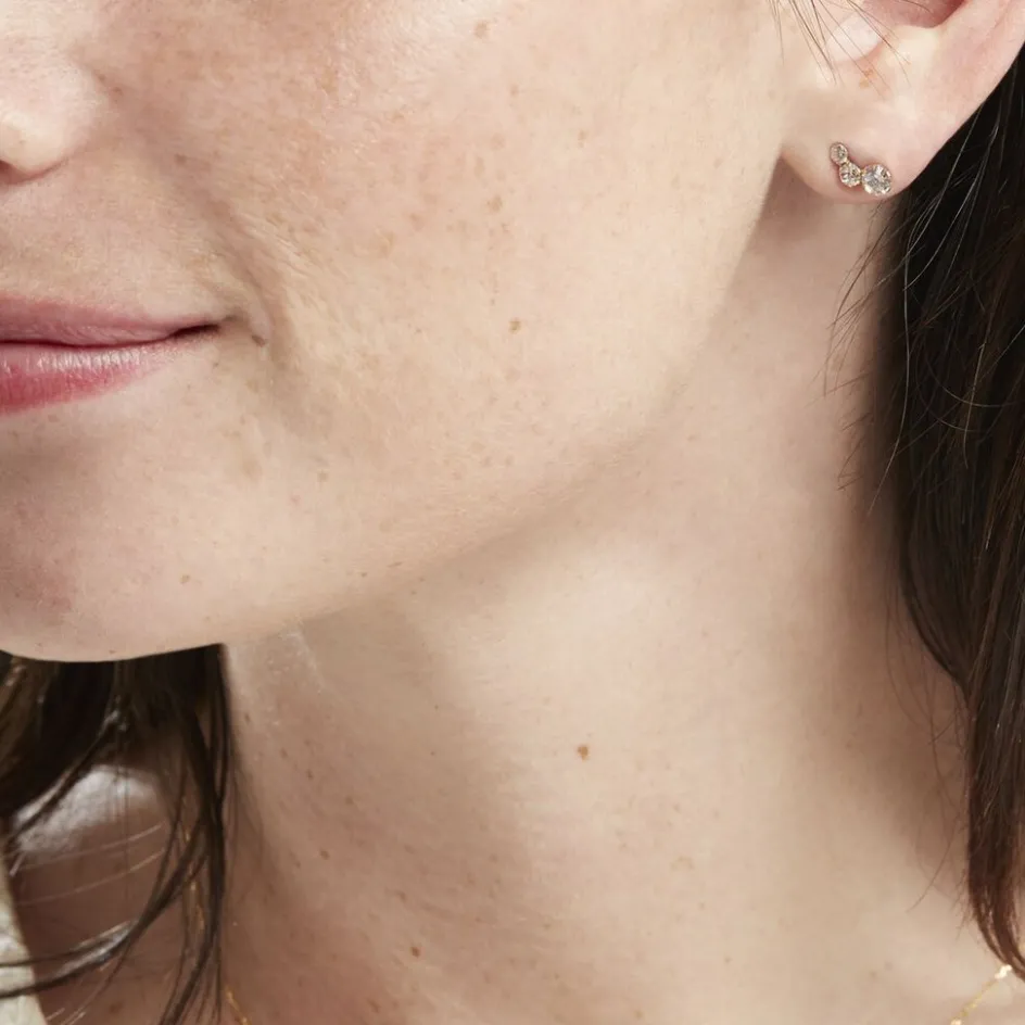 Boucles D’oreilles Puces Or Jaune 375/1000 Barrettes Oxydes De Zirconium