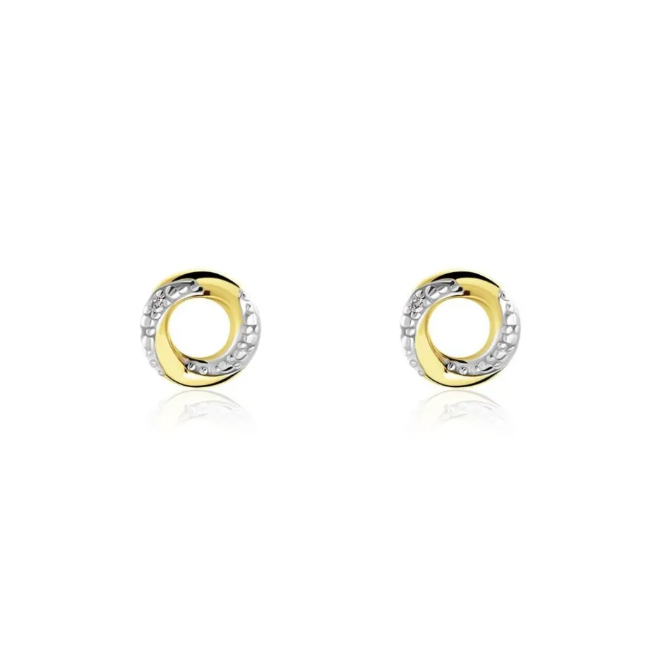 Boucles D’oreilles Puces Or Jaune 375/1000 Formes Cercles Diamants