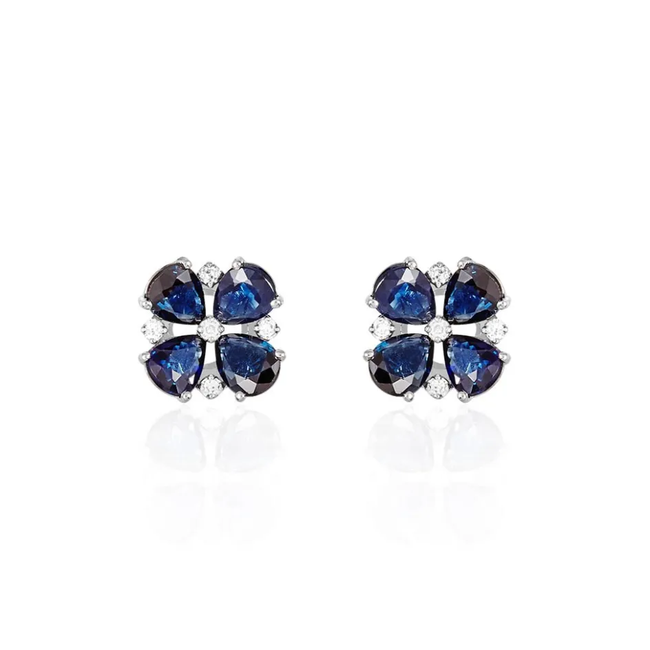 Boucles D’oreilles Or Blanc 375/1000 Fleurs Saphirs Et Diamants