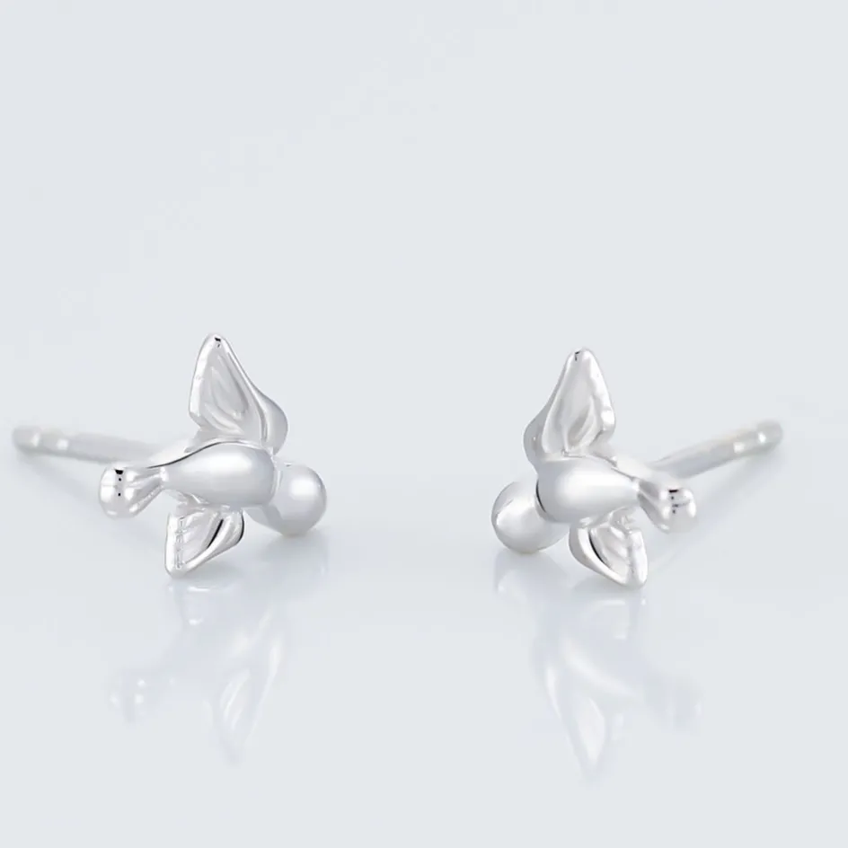 Boucles D’oreilles Puces Argent Blanc 925/1000 Oiseaux