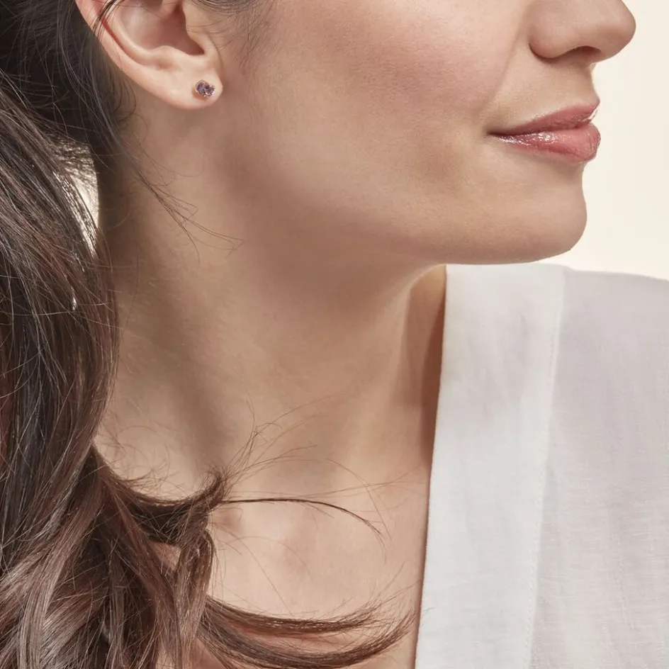 Boucles D’oreilles Or Jaune 375/1000 Améthyste Ovale Serti 4 Griffes 6x4mm