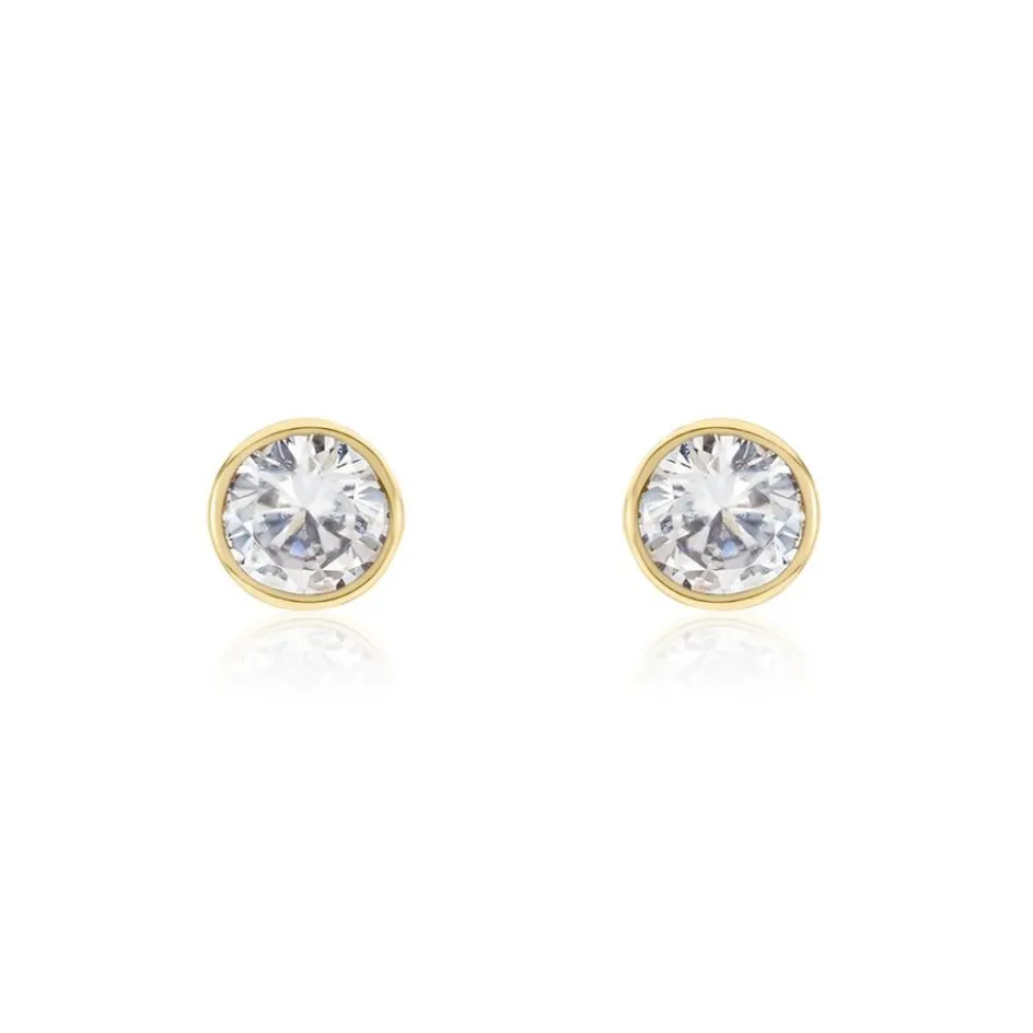 Boucles D’oreilles Puces Plaqué Or Jaune Oxydes De Zirconium Blancs Sertis Clos