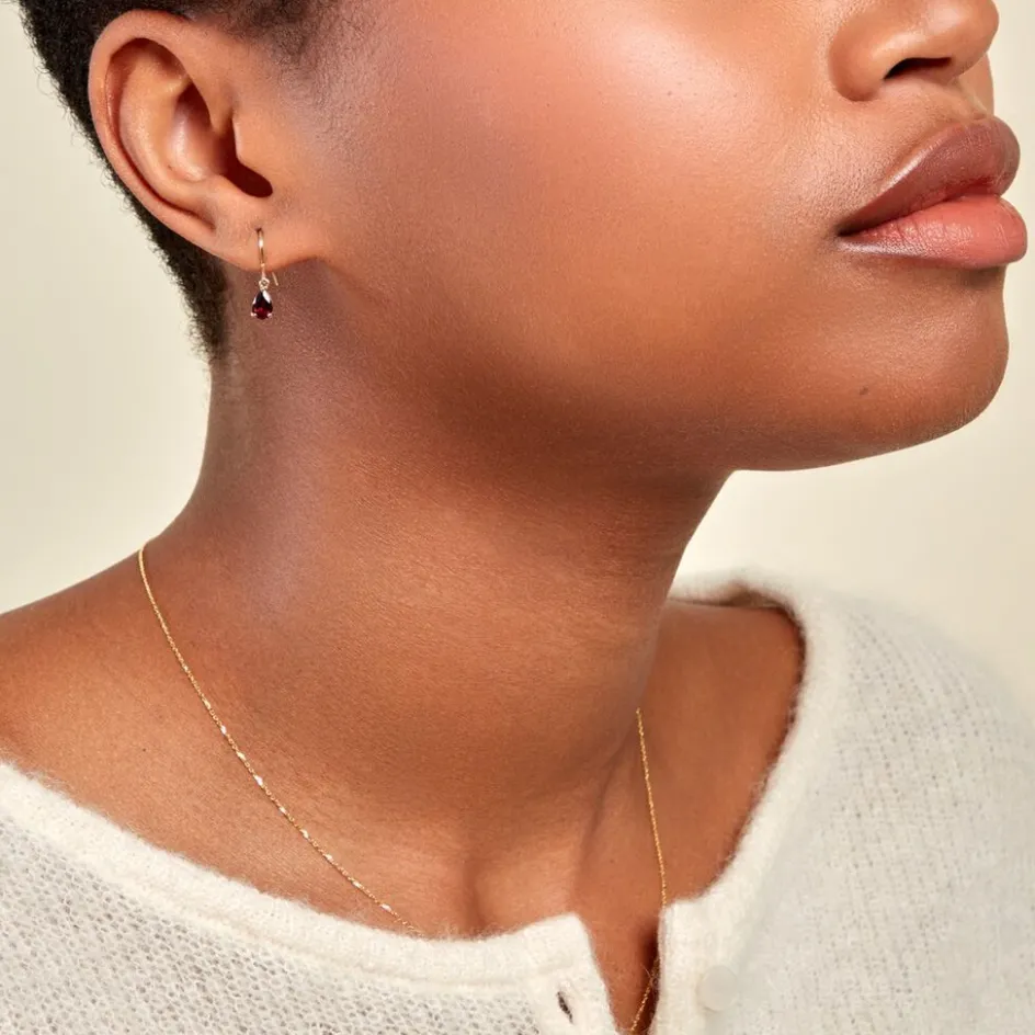 Boucles D’oreilles Pendantes Or Jaune 375/1000 Poire Rhodolite Serti Griffe