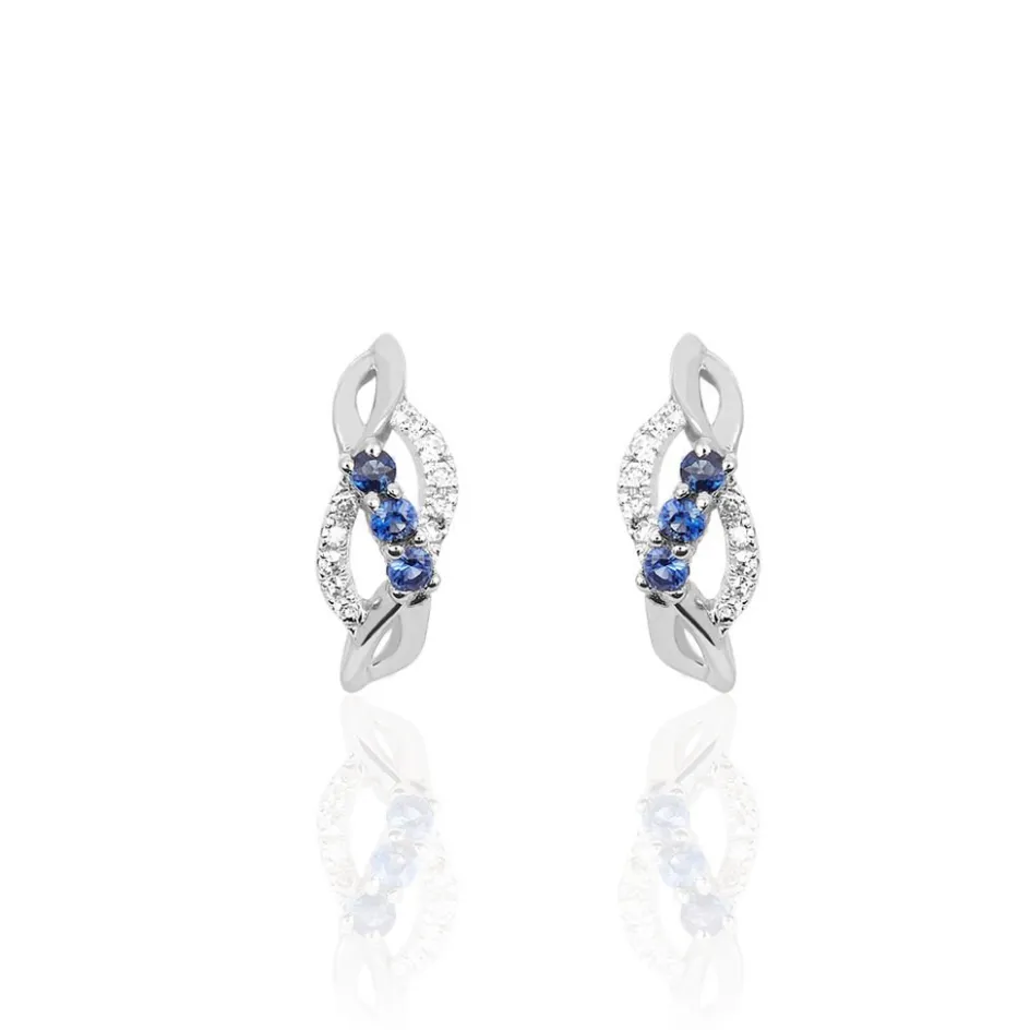 Boucles D’oreilles Or Blanc 375/1000 Trilogie Saphirs Et Diamants