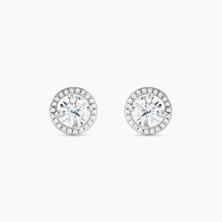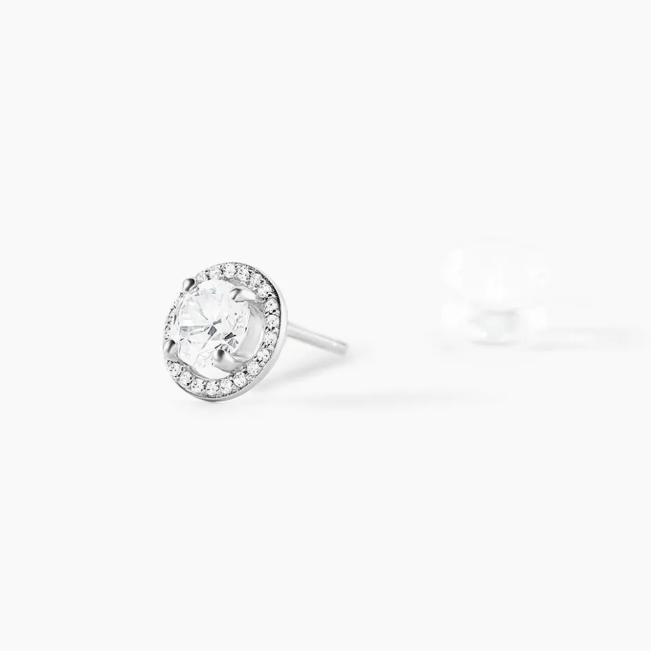Boucles D’oreilles Puces Or Blanc 375/1000 Oxydes De Zirconium Gm