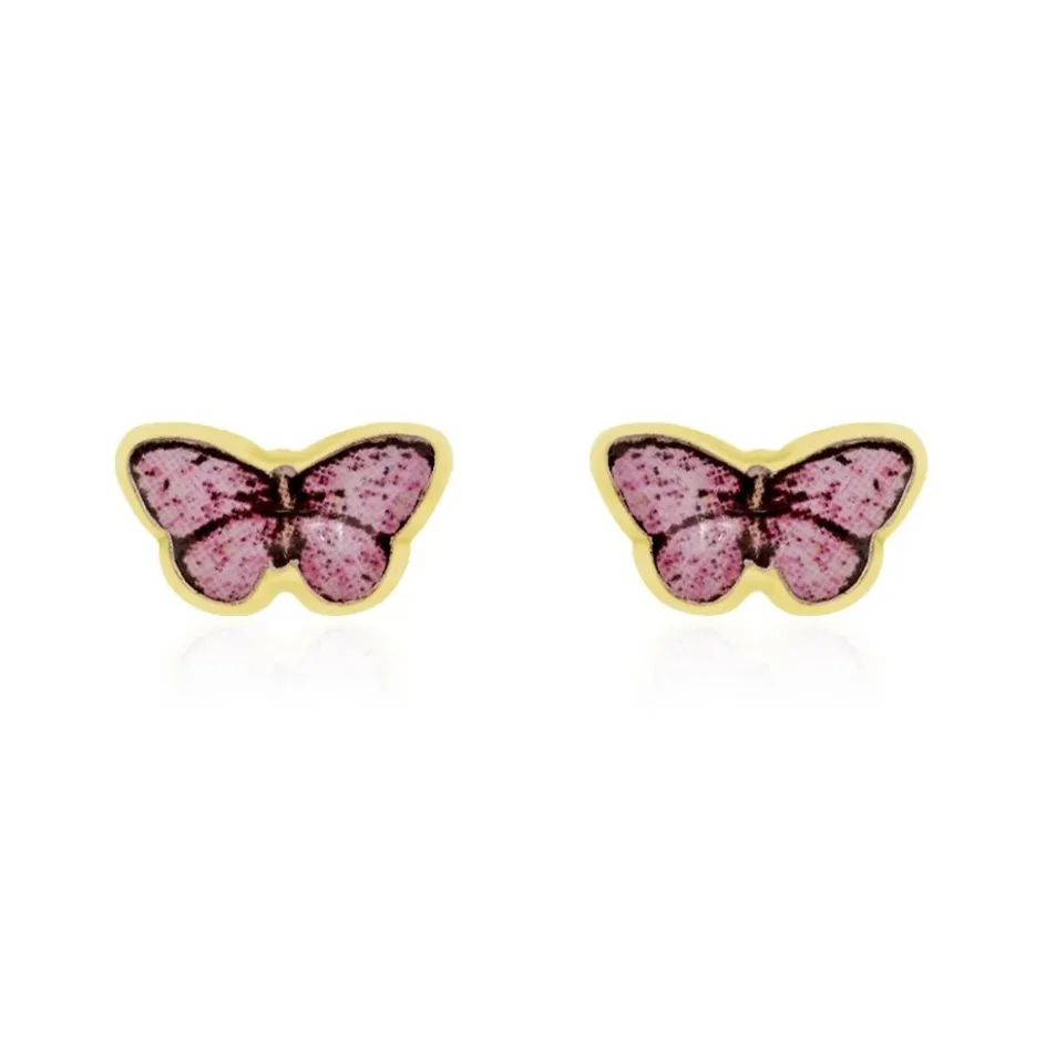 Boucles D’oreilles Or Jaune 375/1000 Puces Papillon Tropical Rose