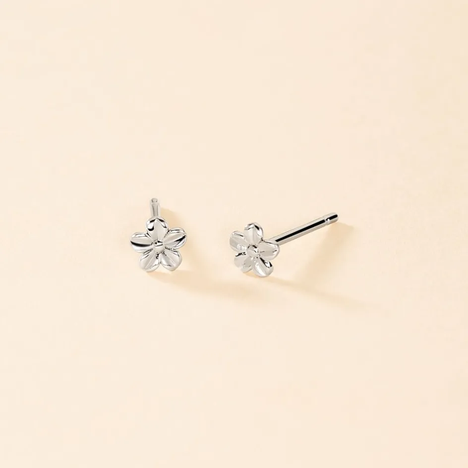 Boucles D’oreilles Puces Argent Blanc 925/1000 Fleurs