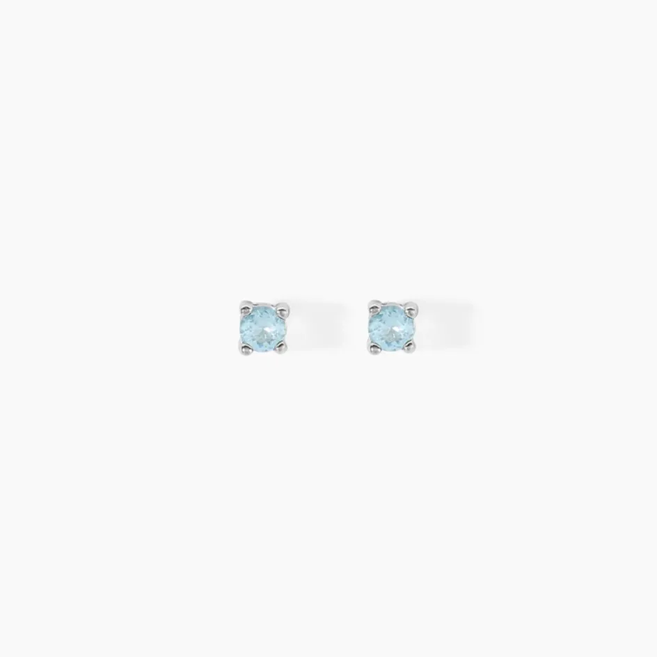 Boucles D’oreilles Puces Argent Blanc 925/1000 Verres Bleus Serti 4 Griffes