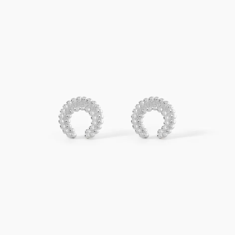 Boucles D’oreilles Puces Argent Blanc 925/1000 Cornes Effet Mate Et Perle