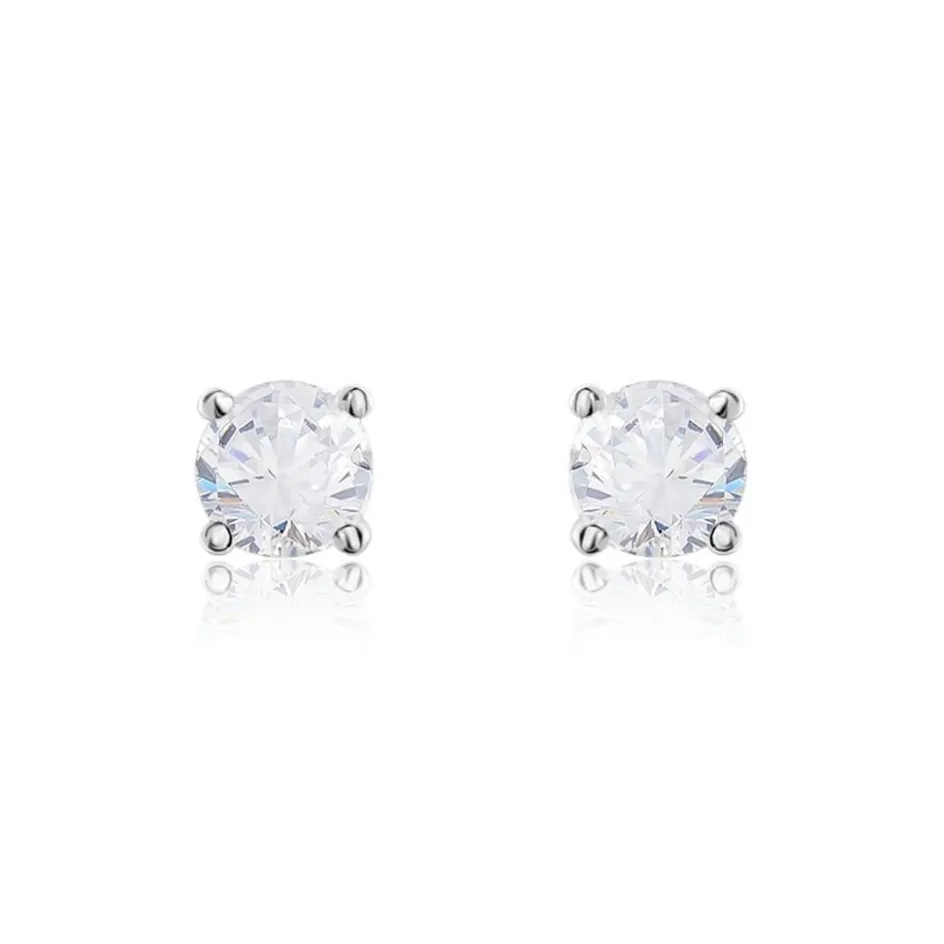 Boucles D’oreilles Or Blanc 375/1000 Puces Diamants 0.38cts Sertis 4 Griffes