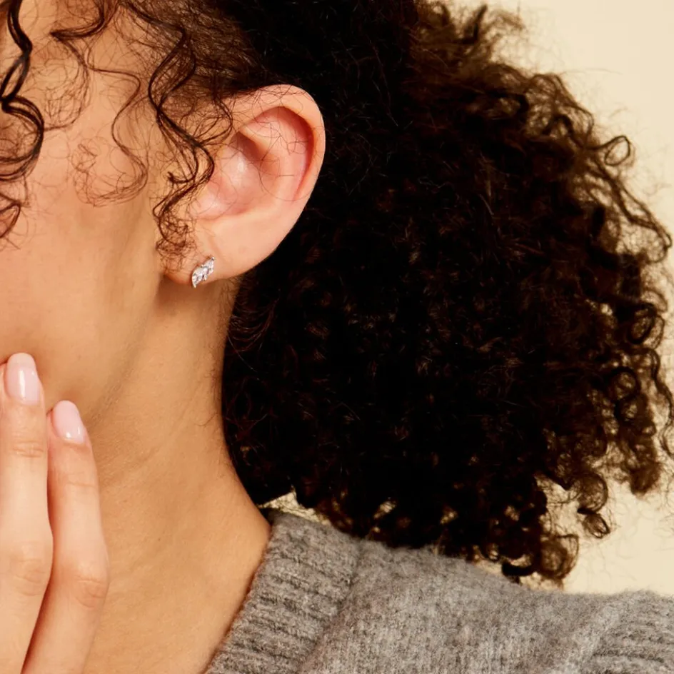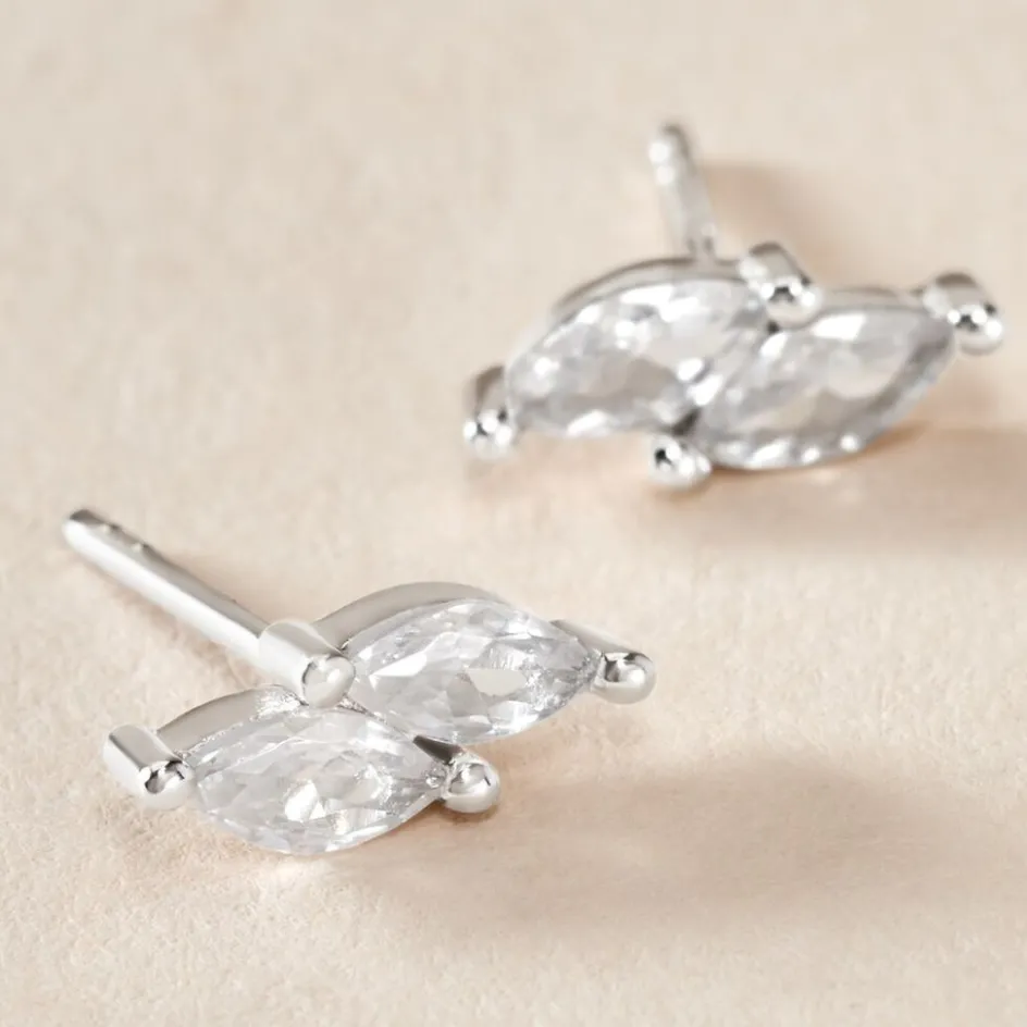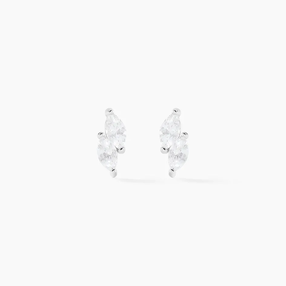 Boucles D’oreilles Puces Argent Blanc 925/1000 Oxydes De Zirconium Taille Navette Serti Griffes