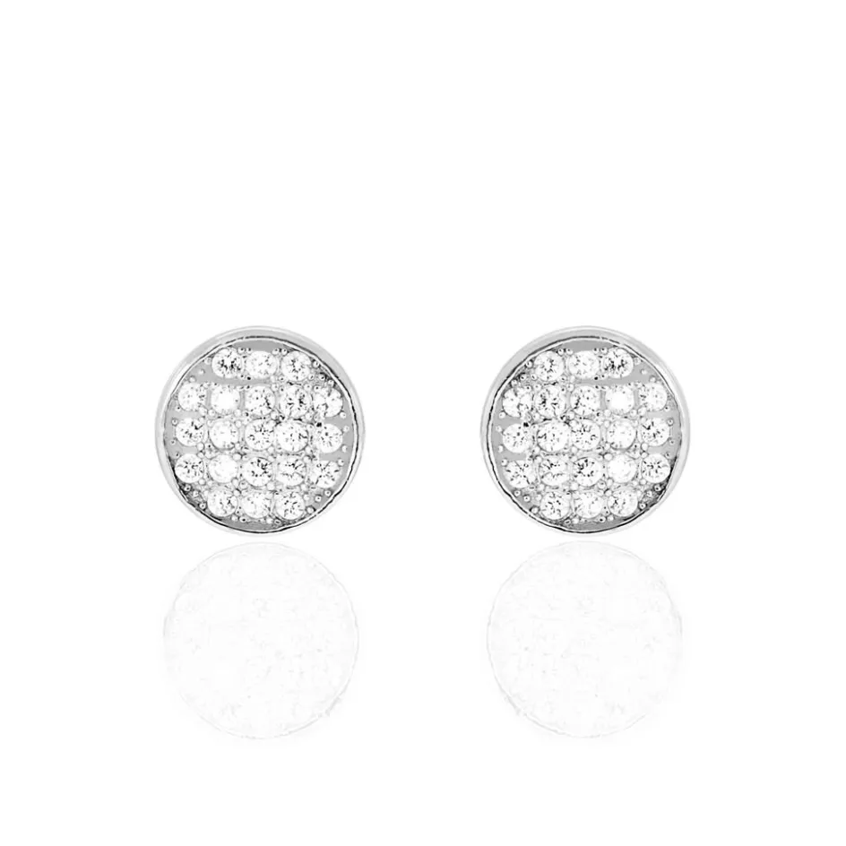 Boucles D’oreilles Puces Argent Blanc 925/1000 Forme Pastille Pavage Oxydes De Zirconium
