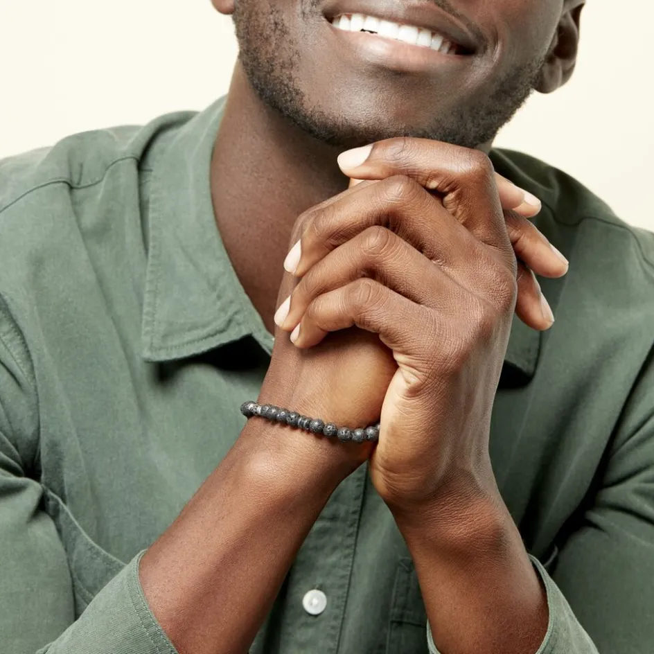 Bracelet Acier Inoxydable Blanc Boules Agates Noires Et Acier Inoxydable Blanc 21cm