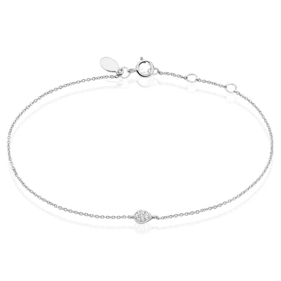 Bracelet Or Blanc 375/1000 Forme Goutte Pavage Diamants 18cm