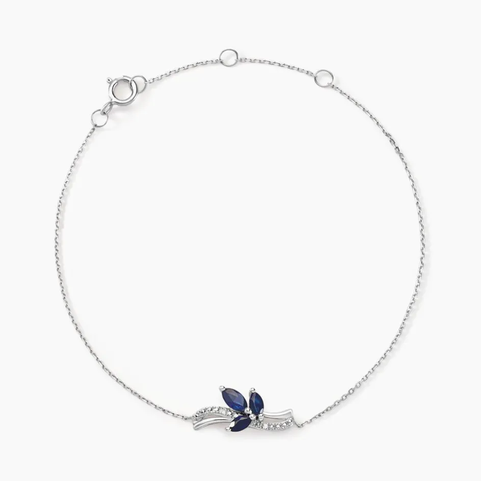 Bracelet Or Blanc 375/1000 Saphirs Et Pavage Diamants 18.5cm
