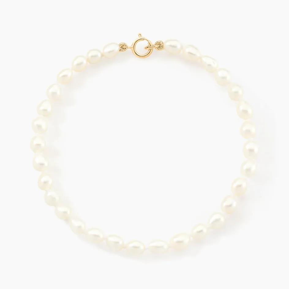 Bracelet Or Jaune 375/1000 Perles De Culture Grain De Riz 4.5/5mm 17cm