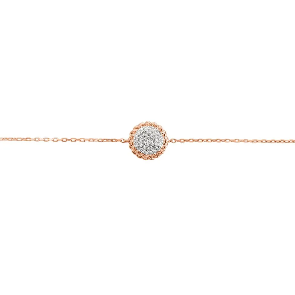 Bracelet Or Rose 375/1000 Forme Cercle Effet Perle Pavage Diamants 18.5cm