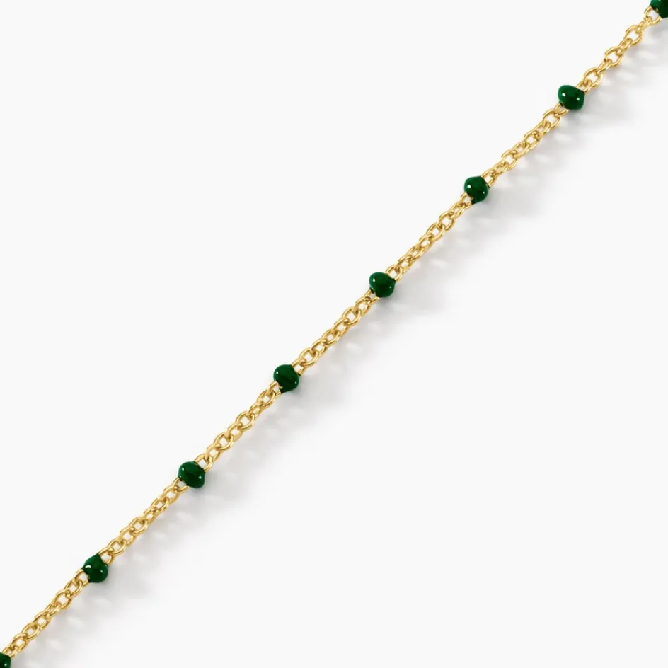 Bracelet Argent Dore 925/1000 Email Vert 18.5cm