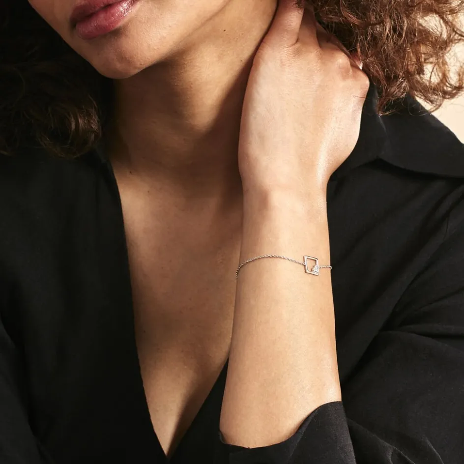 Bracelet Argent 925/1000 mettild Carre Ajoure Serti Griffes Oxydes De Zirconium Maille Forcat 16+3cm