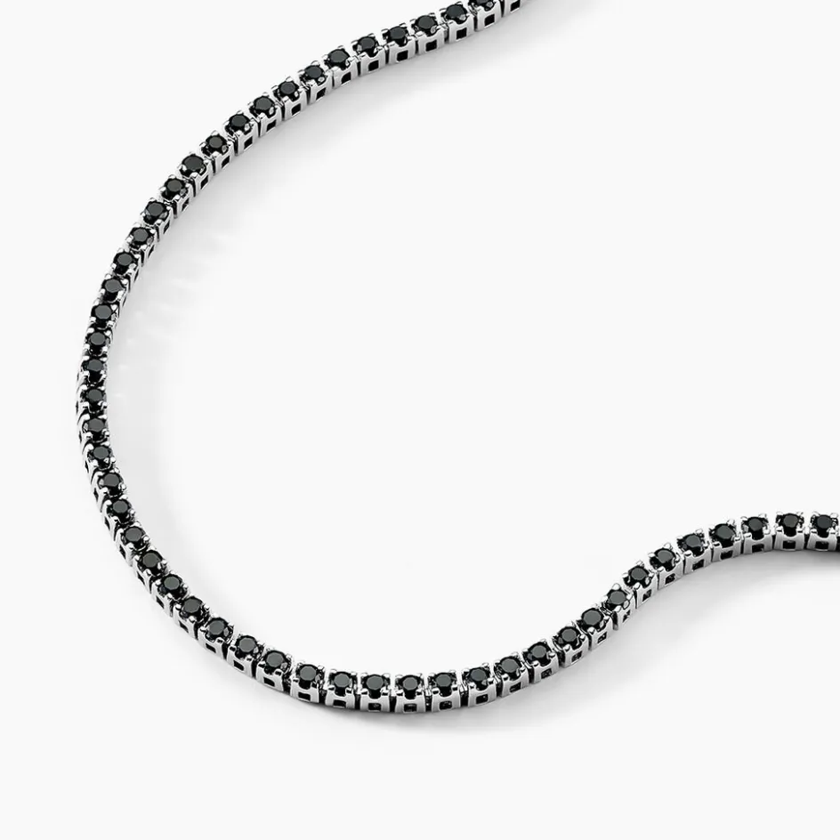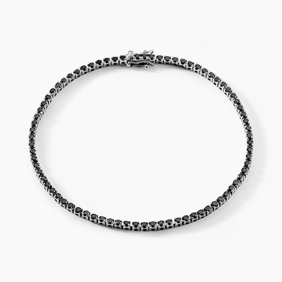 Bracelet Or Blanc 375/1000 Riviere Diamants Noirs 2.22cts Micro Serti 19cm