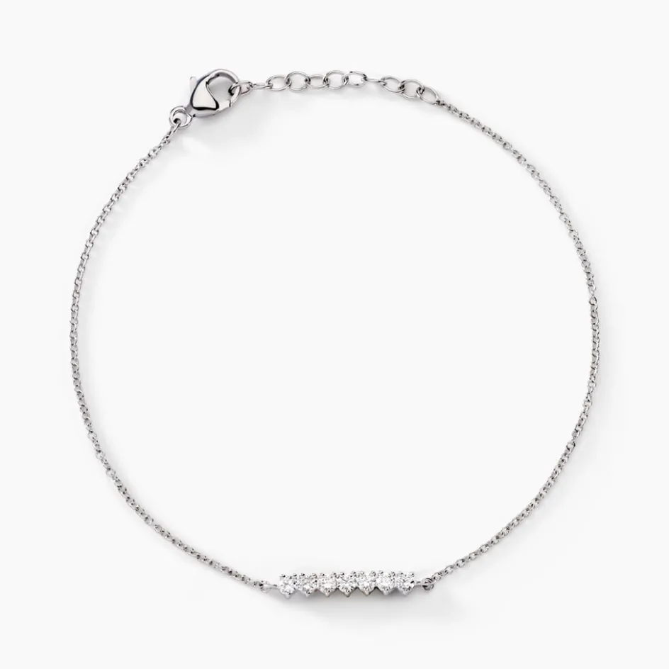 Bracelet Or Blanc 375/1000 Barrette Diamants Synthetiques 0.20cts 18.5cm