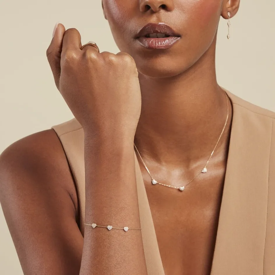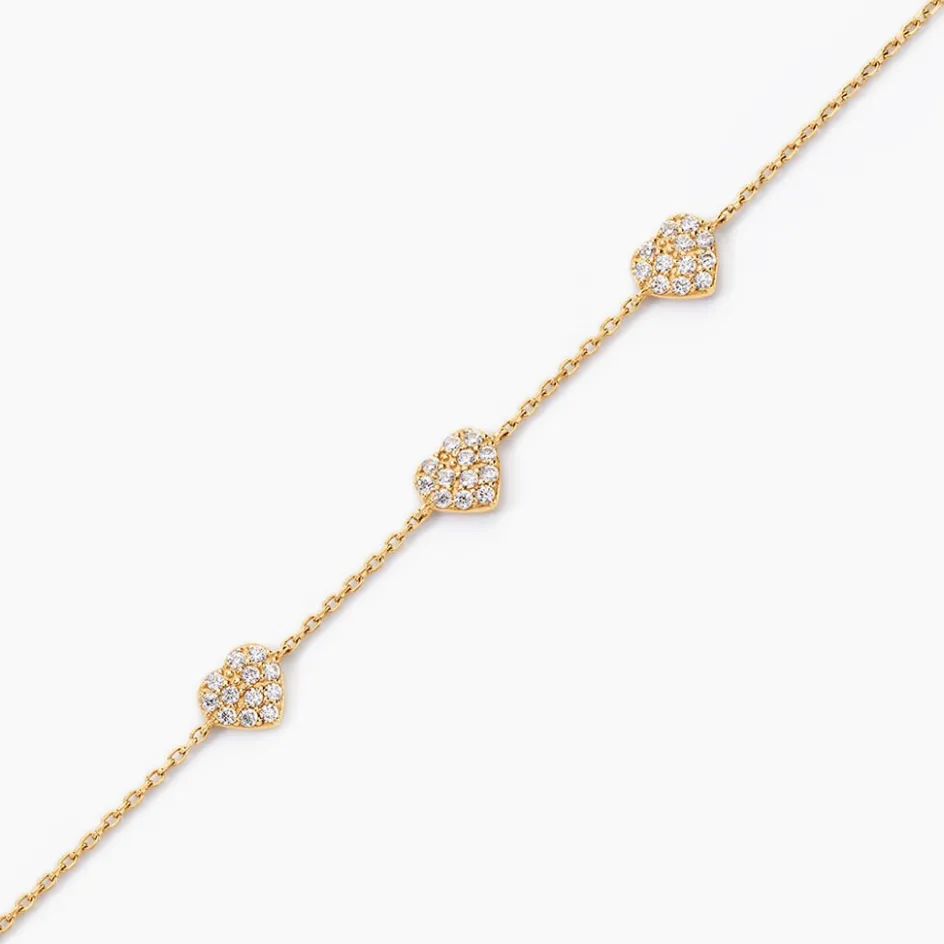 Bracelet Or Jaune 375/1000 Trilogie C艙ur Pavage Oxyde De Zirconium Maille Forcat 16+2cm