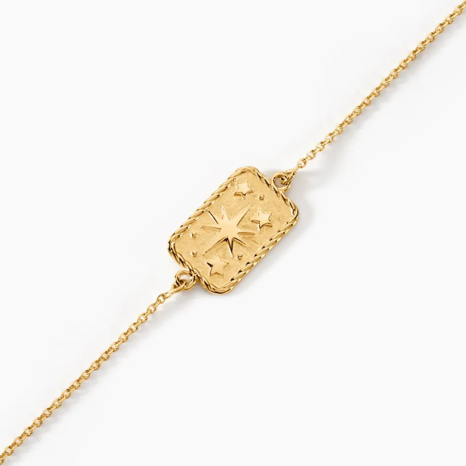 Bracelet Or Jaune 375/1000 Etoile Astrale Plaque Rectangle Maille Jaseron 16+2cm